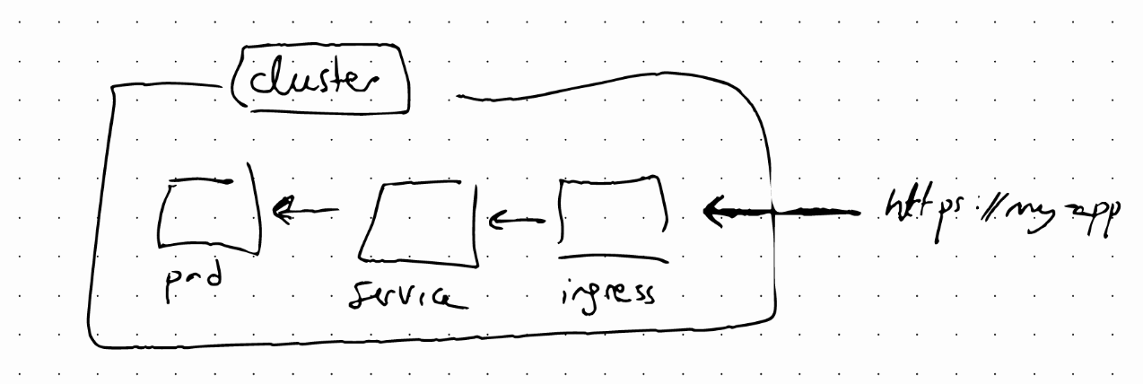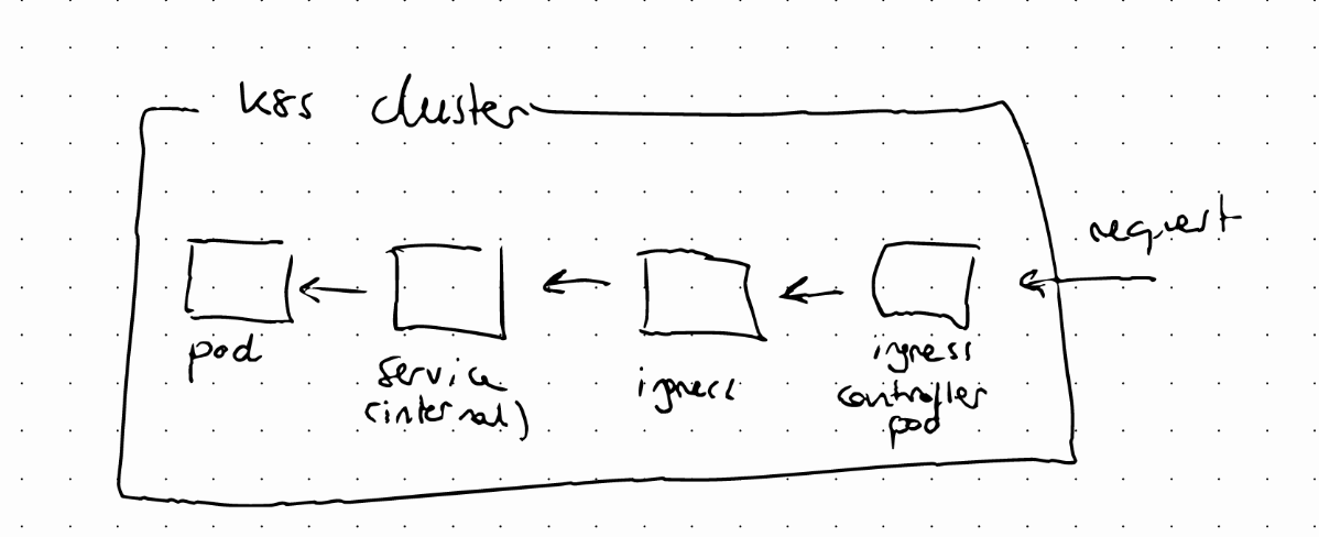 We might want our application to be accessible through a web browser. For that, we need an external service, but we would need to access our own application as http://ip:port, which is not very user friendly. To solve this problem we can use another component: Ingress